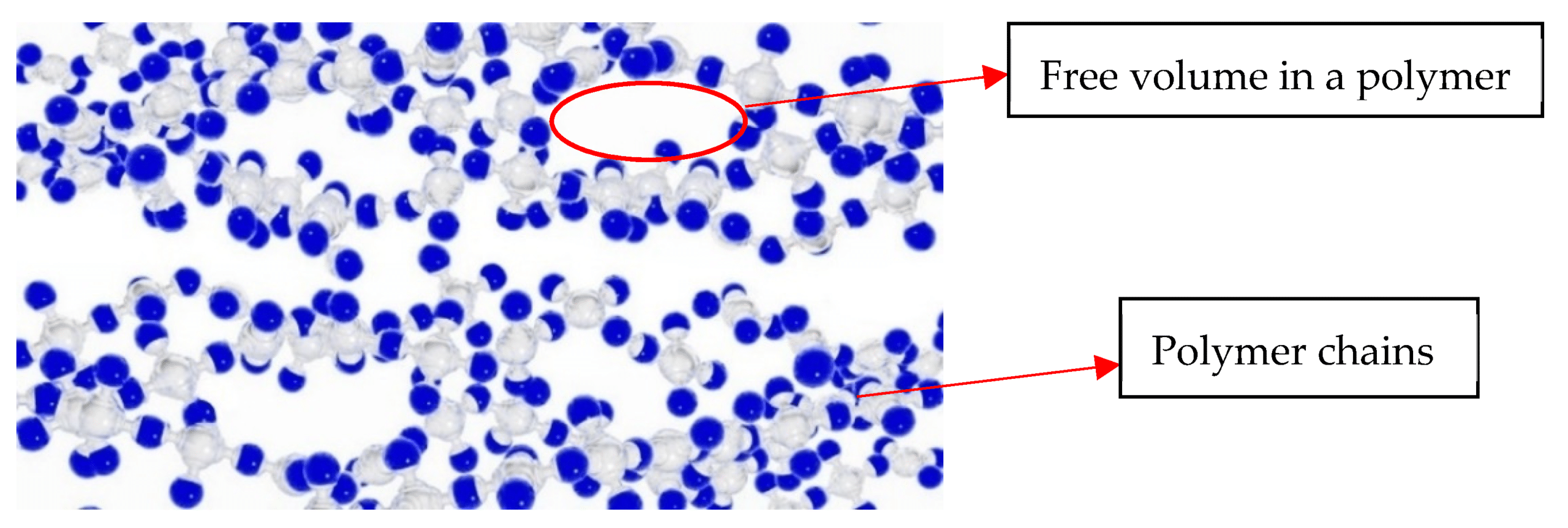در پلیمرها، زنجیرهها بهصورت کاملاً منظم کنار هم قرار نمیگیرند و بین آنها فضای خالی کوچکی وجود دارد که به آن حجم آزاد گفته میشود.