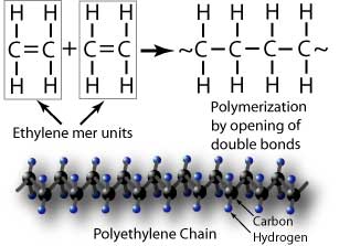 پلیمر چیست؟ پلیمر مادهای است که از زنجیرههای بلند مولکولی تشکیل شده و این زنجیرهها از تکرار واحدهای کوچکی به نام مونومر ساخته میشوند. تعداد این واحدهای تکراری میتواند بسیار زیاد باشد (حتی بیش از ۱۰٬۰۰۰ واحد)، به همین دلیل به این مولکولها ماکرومولکول گفته میشود.تعداد این واحدهای تکراری میتواند بسیار زیاد باشد (حتی بیش از ۱۰٬۰۰۰ واحد)، به همین دلیل به این مولکولها ماکرومولکول گفته میشود. بهعنوان مثال: